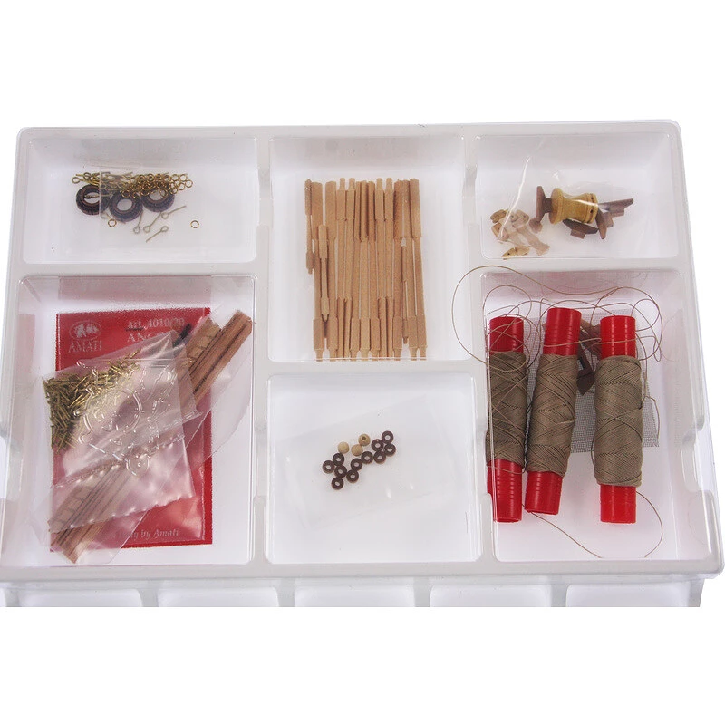 Model statyczny historycznego statku AMATI Polacca Statek wenecki z 1750 roku, wersja kit. Na początku XVIII wieku pływał po Morzu Śródziemnym i był używany jako statek handlowy lub towarowy. Flota wenecka wykorzystywała Polack do ochrony swoich szlaków żeglugowych przed piratami dalmatyńskimi, greckimi i tureckimi. Laserowo wycinane są drewniane elementy, takie jak kile i okładziny, w tym maszty, żagle, takielunek, a także armaty, plany i ozdobna podstawka dla statków.