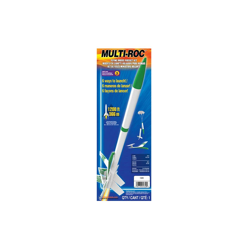 Estes Multi-Roc Kit - model rakietowy do silników rakietowych. Ten zestaw wielofunkcyjny pozwala zbudować rakietę na sześć różnych sposobów - rakieta dwustopniowa, rakieta trzystopniowa, z szybowcem balsa i nie tylko. Osiągalna wysokość lotu do 366 m!