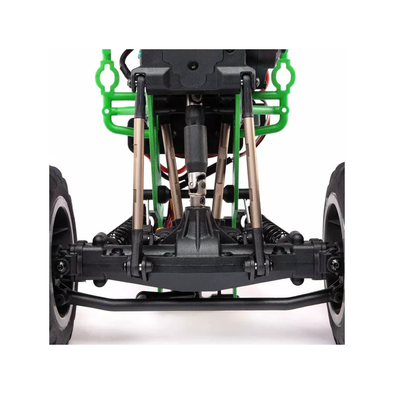 Model Losi Mini LMT 4WD jest wyposażony w tylny pałąk z dwoma stałymi pozycjami i szeroką rolkę ułatwiającą napęd na tylne koła.