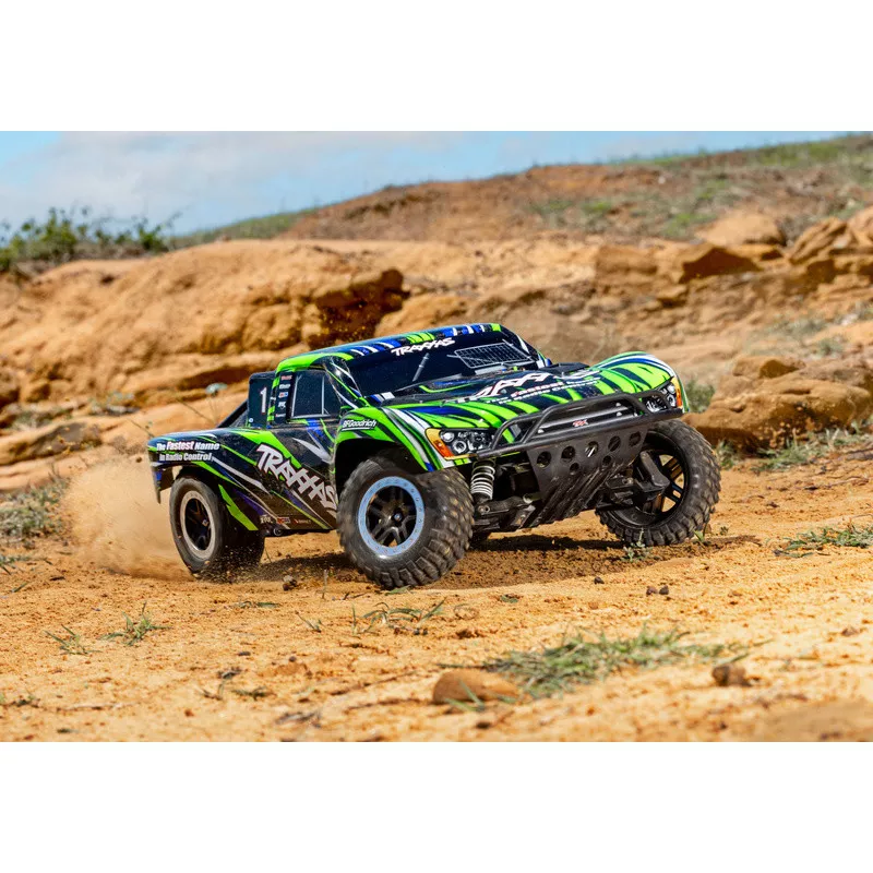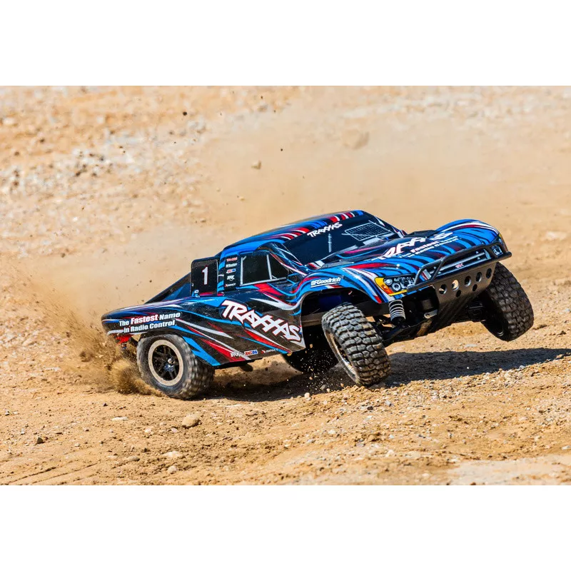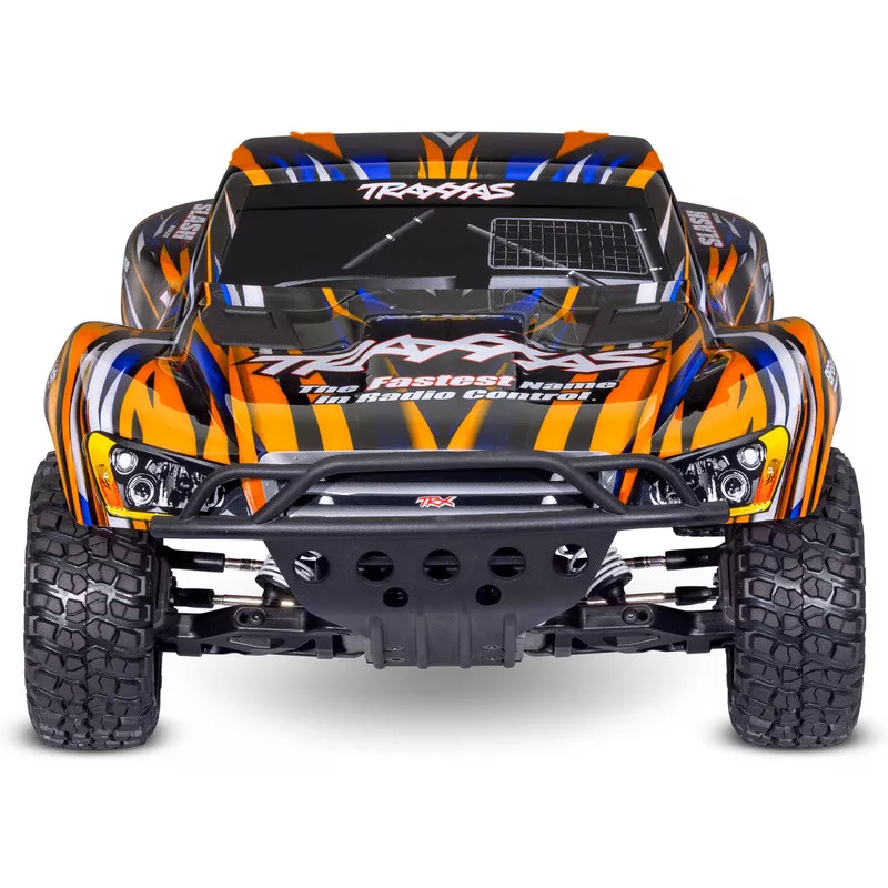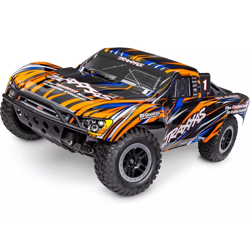 Traxxas Slash to potężny model samochodu RC w skali 1:10 z napędem na 2 koła i prędkością do 56 km/h. Jest w pełni zmontowany i gotowy do jazdy. Zasilany jest mocnym silnikiem prądu przemiennego z regulatorem BL-2S . Prosty zestaw RC Traxxas TQ 2,4 GHz zapewnia precyzyjną mechanikę zapewniającą precyzyjną kontrolę. Ponadto model jest fabrycznie wyposażony w komponenty zestawu Extreme Heavy Duty zapewniające wysoką trwałość i ekskluzywny, zatrzaskowy system mocowania nadwozia.
