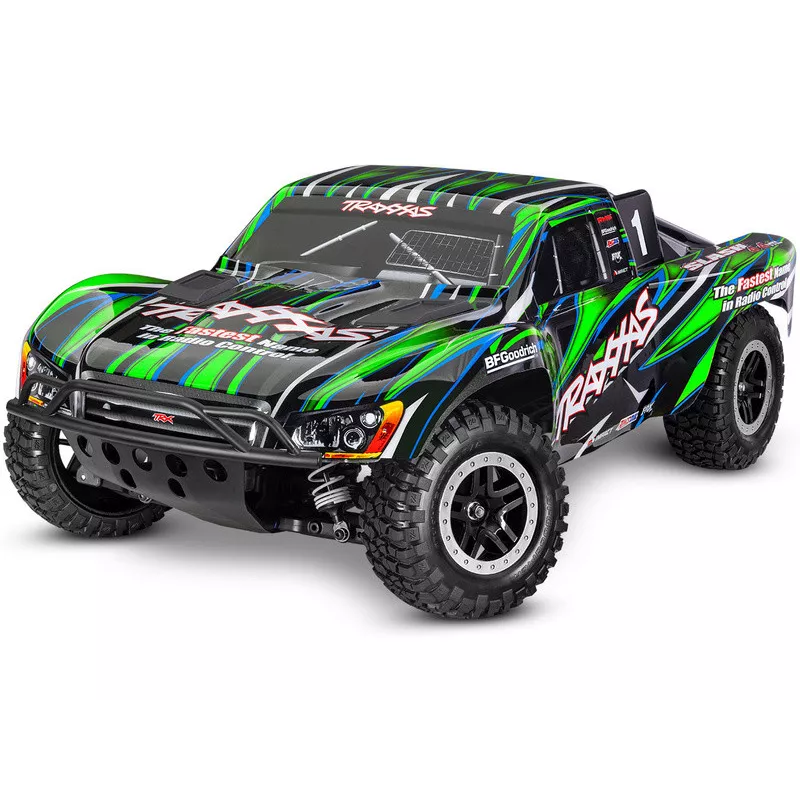 Sprawdzony model samochodu Slash RC, który wyznaczył standardy dla wszystkich innych modeli w skali 1:10, pojawia się w nowej, jeszcze trwalszej wersji wyposażonej w najmocniejsze komponenty Extreme Heavy Duty . Aby uzyskać brutalne przyspieszenie i prędkość do 96 km/h, model wyposażony w silnik Velineon 550 AC Niezależne zawieszenie, napęd 4x4 i elektroniczną stabilizację jazdy TSM przyczyniają się do doskonałego prowadzenia. Nowo ekskluzywny, zatrzaskowy system mocowania korpusu, zapewniający łatwą wymianę baterii i estetyczny wygląd.