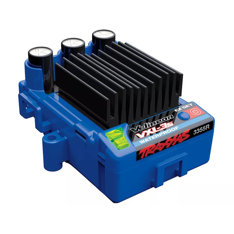 Wodoodporny* elektroniczny sterownik Traxxas Velineon VXL-3S V2 AC z trzema trybami jazdy, obsługą nowoczesnych akumulatorów LiPo o dużej pojemności i łatwym sterowaniem za pomocą przycisku EZ-Set™. Kontroler VXL-3S jest wyposażony w tryb treningowy, który ogranicza pełne otwarcie przepustnicy do 50%. Dzięki temu początkujący kierowcy lub dzieci mogą stopniowo zapoznawać się z funkcjami modelu i przygotowywać się do korzystania z pełnej mocy samochodu. Zabezpieczenie termiczne, pozłacane złącza, prosta obsługa i intuicyjna sygnalizacja za pomocą dwukolorowej diody LED.
