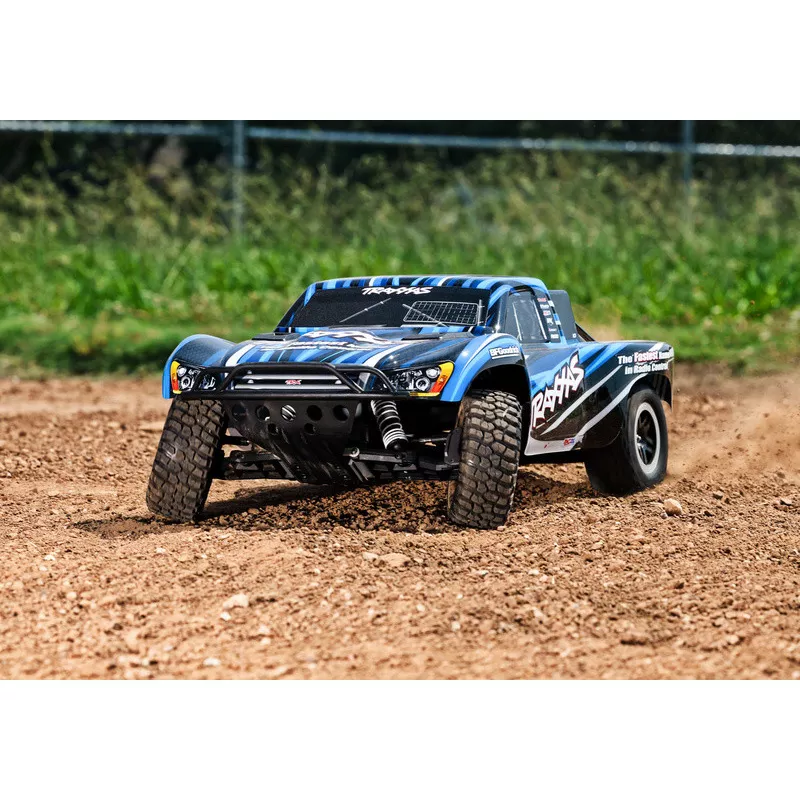 Traxxas Slash to model samochodu RC w skali 1:10 z napędem 2WD, który porusza się z prędkością do 30 mil na godzinę. Jest w pełni zmontowany i gotowy do jazdy od razu po wyjęciu z pudełka. Napędzany jest mocnym silnikiem Titan 550 12T DC z regulatorem XL-5. Prosty zestaw RC Traxxas TQ 2,4 GHz zapewnia precyzyjną mechanikę zapewniającą precyzyjną kontrolę. Zawiera akumulator NiMH i nowoczesną ładowarkę USB-C zapewniającą bezpieczną i bezproblemową pracę. Nowością w modelu jest zatrzaskowy system mocowania nadwozia ułatwiający wymianę akumulatora oraz fabrycznie montowane elementy zawieszenia Extreme Heavy Duty zapewniające wysoką trwałość.