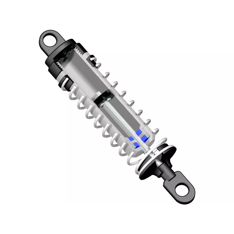 Amortyzatory olejowe o dużym skoku wykorzystują podwójne pierścienie X, co zapewnia doskonałe uszczelnienie i płynną pracę. Solidna konstrukcja w połączeniu z dużą objętością oleju umożliwia amortyzację nawet dużych uderzeń w trudnym terenie. Możesz dostosować amortyzatory do swoich potrzeb poprzez regulację sprężyn i zmianę lepkości oleju.