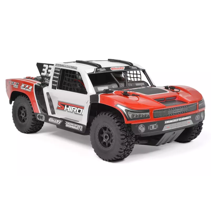 SHIROI jest nie tylko szybki, ale i świetnie wygląda! Od wewnętrznej klatki bezpieczeństwa po realistyczne zderzaki, każdy szczegół został zaprojektowany tak, aby odzwierciedlać prawdziwe wyścigi krótkodystansowe. Prefabrykowane nadwozie charakteryzuje się agresywną stylistyką i otwartymi nadkolami, które nadają SHIROI niepowtarzalny terenowy charakter. Specjalne opony Mudclaws SC na czarnych szprychowych felgach zapewniają doskonałą przyczepność i realistyczny wygląd, niezależnie od tego, czy mkniesz przez błoto, żwir, czy skaczesz.