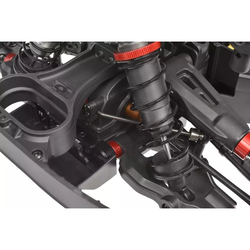 Standardowo montowane są aluminiowe amortyzatory olejowe o dużej średnicy, zapewniające wyjątkowe tłumienie i spójną reakcję na każdej nawierzchni. Dzięki regulowanym sprężynom i różnym olejom zawieszenie SHIROI można dostosować do prędkości, pokonywania zakrętów lub lądowania z dużych wysokości, zapewniając pełną kontrolę w każdych warunkach.