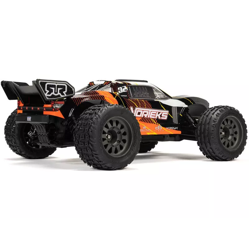 Arrma Vorteks Mega 550 1:10 RTR Truggy RC Model samochodu RC z napędem na 2 koła, niezależnym zawieszeniem, amortyzatorami olejowymi, proporcjonalnym układem kierowniczym i silnikiem prądu stałego. Jako jeden z najtańszych samochodów RC w skali 1:10, szczególnie spodoba się początkującym kierowcom i dzieciom. Dzięki pełnemu wyposażeniu nadaje się także dla bardziej doświadczonych jeźdźców. Model zachowuje wszystkie zalety modeli marki Arrma, takie jak trwałość, wysoka wydajność i obsługa części.