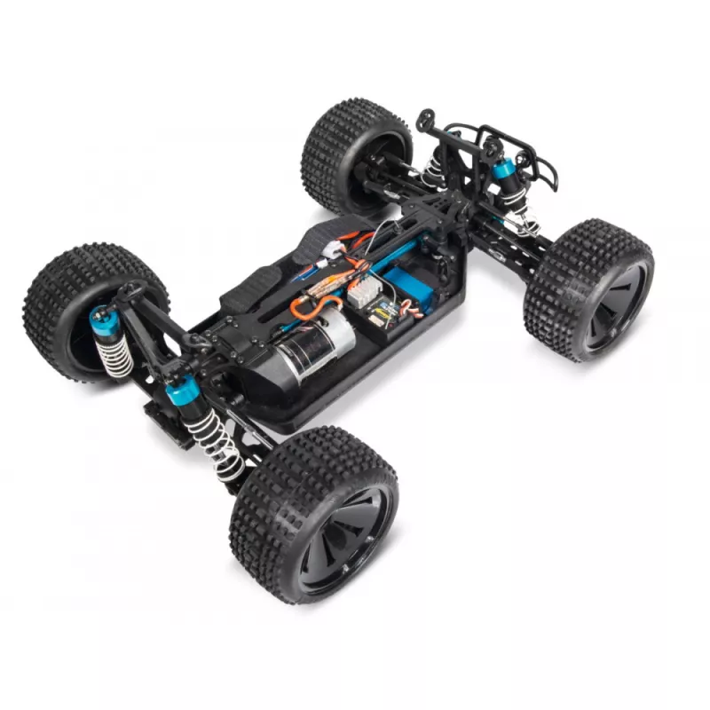 Carson X10 Cage Buster v mierke 1:10 disponuje sofistikovanou technológiou pod kapotou. Má výkonný kartáčovaný motor 550 a diaľkovo ovládaný náhon všetkých kolies až na 35 km/h - dostatok energie pre veľké skoky a dlhé drifty! Plné odpruženie s hliníkovými olejovými tlmičmi nárazov a mikrokolíkovými pneumatikami poskytuje silnú trakciu aj v horšom teréne. Je tu veľa možností nastavenia. Cage Buster je vybavený plne proporcionálnym systémom diaľkového ovládania 2,4 GHz s batériami vysielača, akumulátorom Li-Ion Power a rýchlonabíjacou nabíjačkou USB, a je preto pripravený na jazdu ihneď po nabití. Kúpiť - Nabiť - Riadiť!