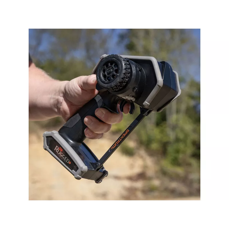 Ergonomicky osvedčené vysielače Spektrum Rugged vydláždili cestu k tomu, aby sa pri modeli DX Rugged+ každý vodič cítil ako doma. Máte preto možnosť pocítiť v ruke protišmykovú rukoväť, ktorá sa príjemne drží, robustný volant a logicky usporiadané pomocné prepínače. Navyše vysielač je ľahký a ľahko sa s ním manipuluje.