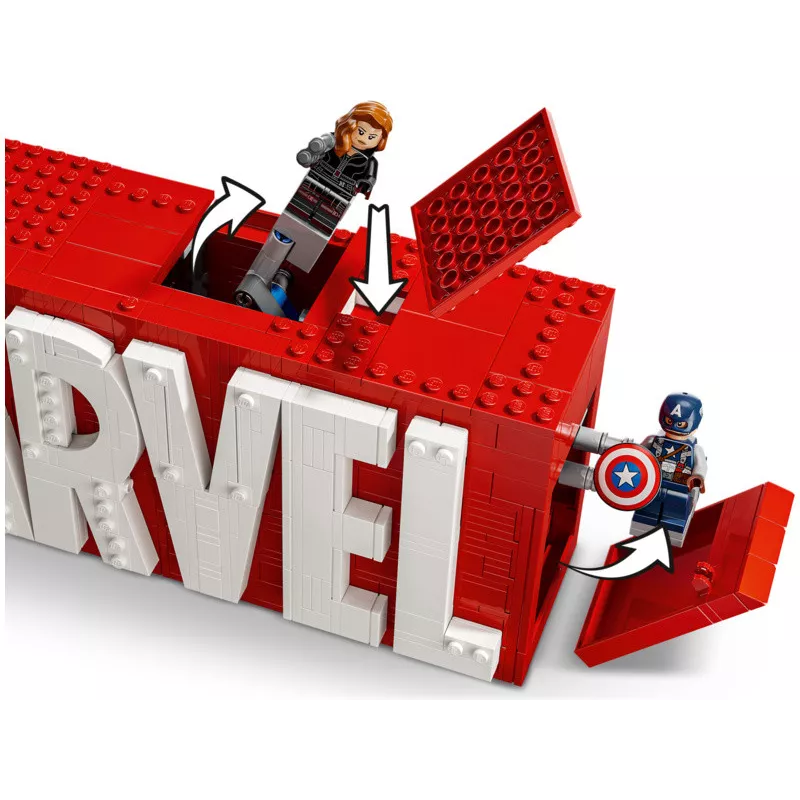 Stavebnica loga MARVEL sa skladá z výrazných červených a bielych kociek. Deti stlačia 3 samostatné tlačidlá v hornej časti loga az modelu vyskočia minifigúrky Avengerov Hulka, Thora, Iron Mana, Black Widow a Kapitána Ameriky, s ktorými sa deti vydajú na akčné dobrodružstvo. Každú minifigúrku je možné ľahko vrátiť do pôvodnej polohy. Stavitelia môžu približovať a otáčať modely v 3D a sledovať svoj pokrok pomocou zábavnej a intuitívnej aplikácie LEGO Builder pre ešte väčšiu porciu digitálnej zábavy.