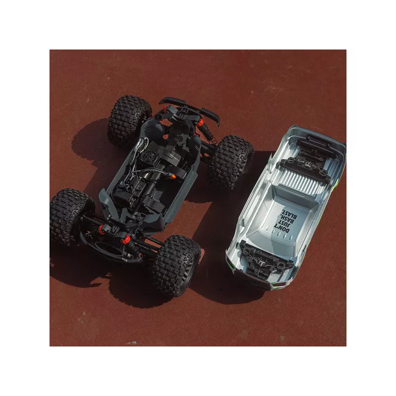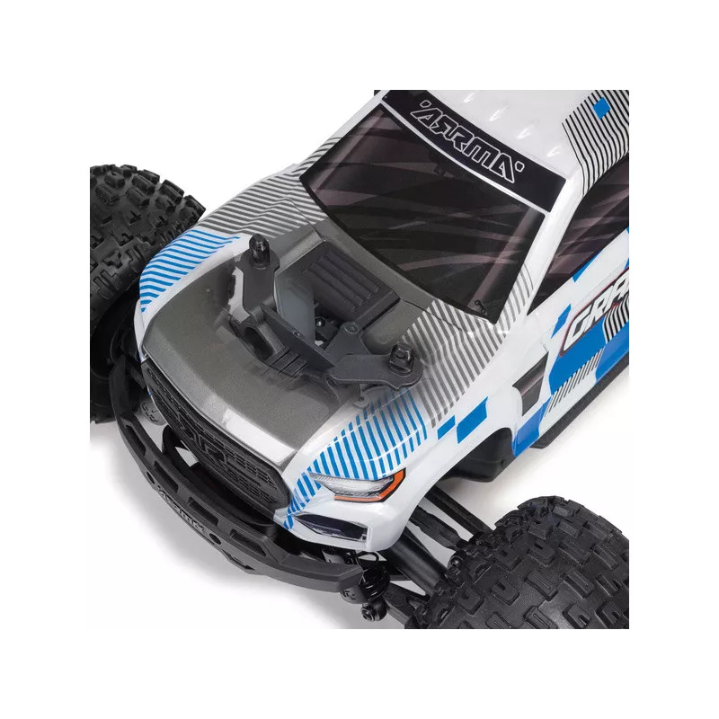 Karoséria je hotová nafarbená a využíva bezsponkový systém upevnenia na šasi pre jednoduchú výmenu akumulátora a prístup k elektronike. Model je vybavený kvalitnou riadiacou jednotkou Spektrum 2v1 s integrovaným regulátorom a prijímača. Na jednotke je možné ľahko nastaviť typ akumulátora pomocou skratovacej prepojky. Jednotka ďalej obsahuje port pre možnosť zapojenia externého prijímača. Veľký motor 665 novo obsahuje hliníkový chladič s 35 mm ventilátorom pre udržanie vhodnej prevádzkovej teploty za všetkých okolností. Stačí doplniť akumulátor a nabíjačku (predávajú sa samostatne), potom môžete vyraziť so svojím ARRMA GRANITE MEGA 665 4x4 na záhradu, do terénu alebo na nízku trávu a užiť si jazdu.