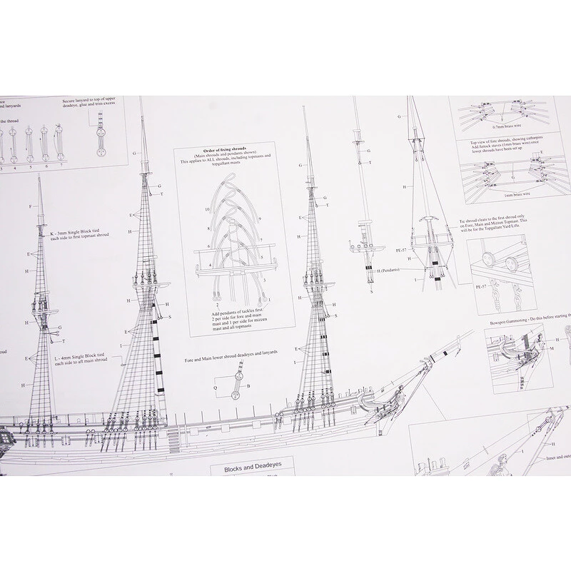 Set obsahuje kompletnú sadu výkresovej dokumentácie modelu v mierke 1:1 s obrázkami jednotlivých detailov. Na výkrese sú v mierke nakreslené montážne zostavy, ich kompletizácia a to vrátane sťažňov a ráheň a spôsob viazania lanoviek. Viacjazyčný postup stavby rámcovo upravuje logické zostavenie jednotlivých komponentov.