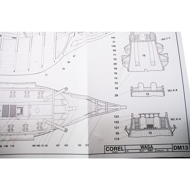 Stavebnica neplovoucího modelu COREL Wasa v mierke 1:75 z roku 1626. Loď švédskeho kráľa Gustáva Adolfa II mala zabezpečiť nadvládu v Baltskom mori, je jednou z najznámejších historických lodí kvôli tragickému potopenie počas prvej plavby. V balení sú drevené diely, lišty a množstvo kovania, sklon, plachty sú už zošity, plány atď.