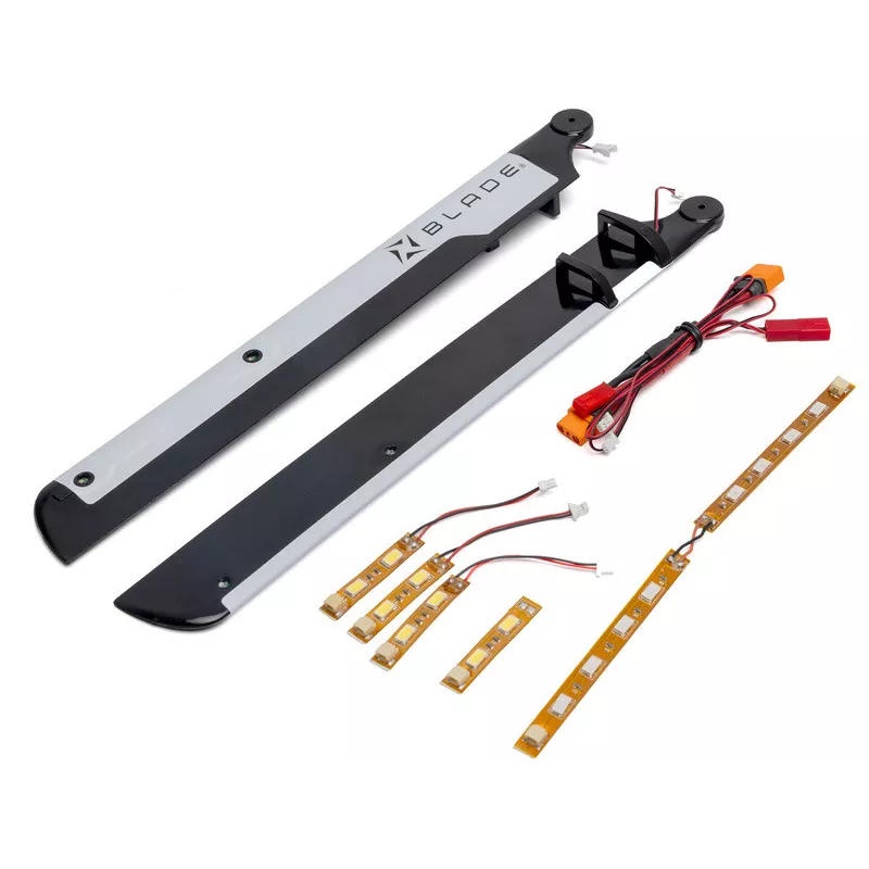 Tuningový diel pre RC model vrtuľníka Blade Revolution 235 CP: LED osvetlenie Night (LED pásky). LED pásky sa napájajú akumulátorom v modeli.