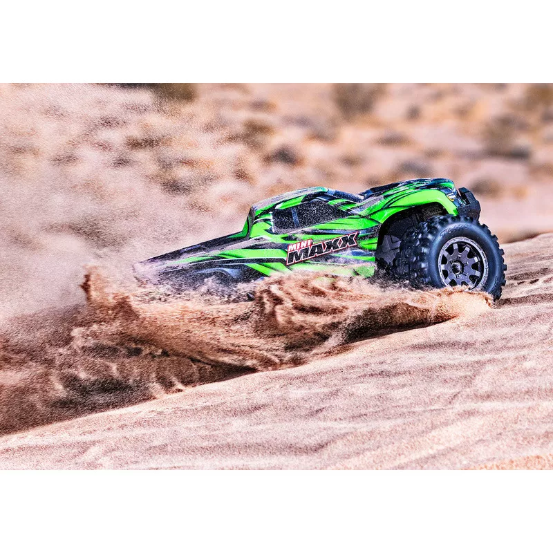 Extrémne výkonný a odolný RC model auta Mini Maxx v menšej kompaktnej veľkosti 1:12, ktorý sa ľahko zmestí do batohu. Vychádza z bezkonkurenčného a obľúbeného radu modelov Maxx. Pohonné ústrojenstvo, šasi aj striedavý motor s regulátorom BL-2s sú nadrozmerne dimenzované ako pri väčších modeloch v mierke 1:10. Rýchlosť až 48 km/h. Použitý je jednoduchý systém upínania bezsponkovej karosérie. Najnovšie pneumatiky SledgeHamer s vysokou trakciou sa priamo zahryznú do terénu Zažite MAXXimálnu zábavu ihneď po vybalení z krabice - všetko pre prevádzku je obsahom balenia, vrátane akumulátor 2S LiPo 3500 mAh a USB-C nabíjača.