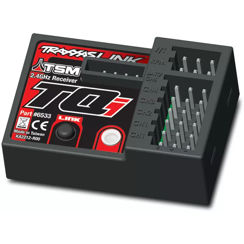 RC prijímač Traxxas TQi 5 kan. TSM s telemetriou pre vysielače Traxxas TQi. Jednoduchá obsluha, párovanie pomocou tlačidla. Indikácia stavu LED diódou. V prijímači sú integrované 3-osé MEMS senzory na učenie polohy prijímača.