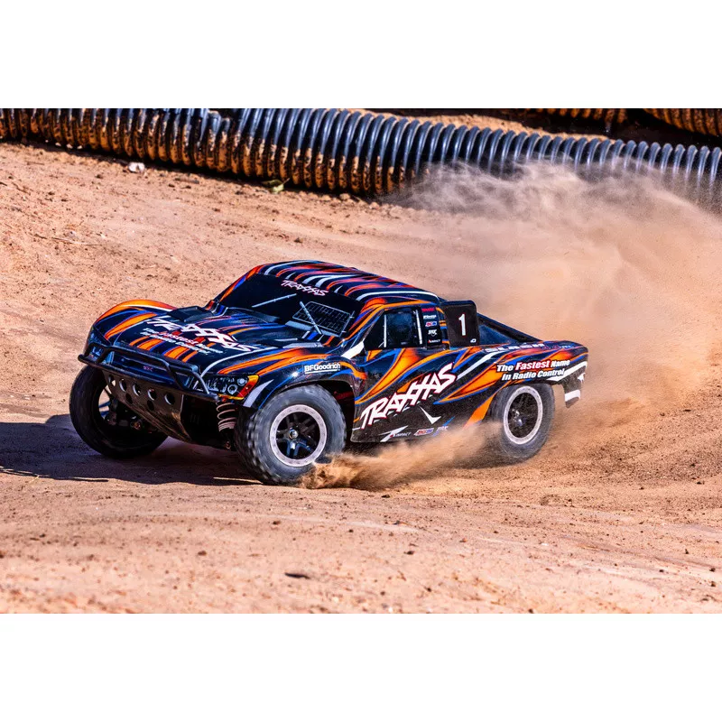Osvedčený RC model auta Slash, ktorý stanovil štandard pre všetky ostatné modely v mierke 1:10, prichádza v novej ešte odolnejšej verzii vybavenej tými najpevnejšími komponentmi Extreme Heavy Duty . Pre brutálnu akceleráciu a rýchlosť až 96 km/h je model vybavený striedavým motorom Velineon 550. K výbornej ovládateľnosti prispieva nezávislé zavesenie, náhon 4x4 a elektronická stabilizácia jazdy TSM . Novo exkluzívny bez-sponkový systém upínania karosérie pre jednoduchú výmenu batérie a čistý vzhľad.
