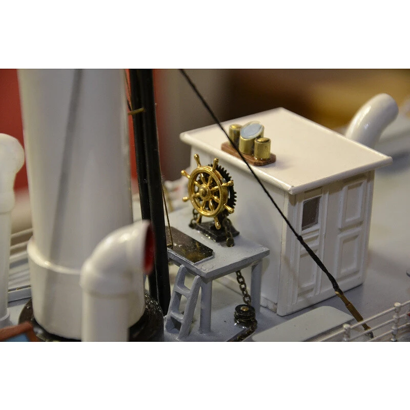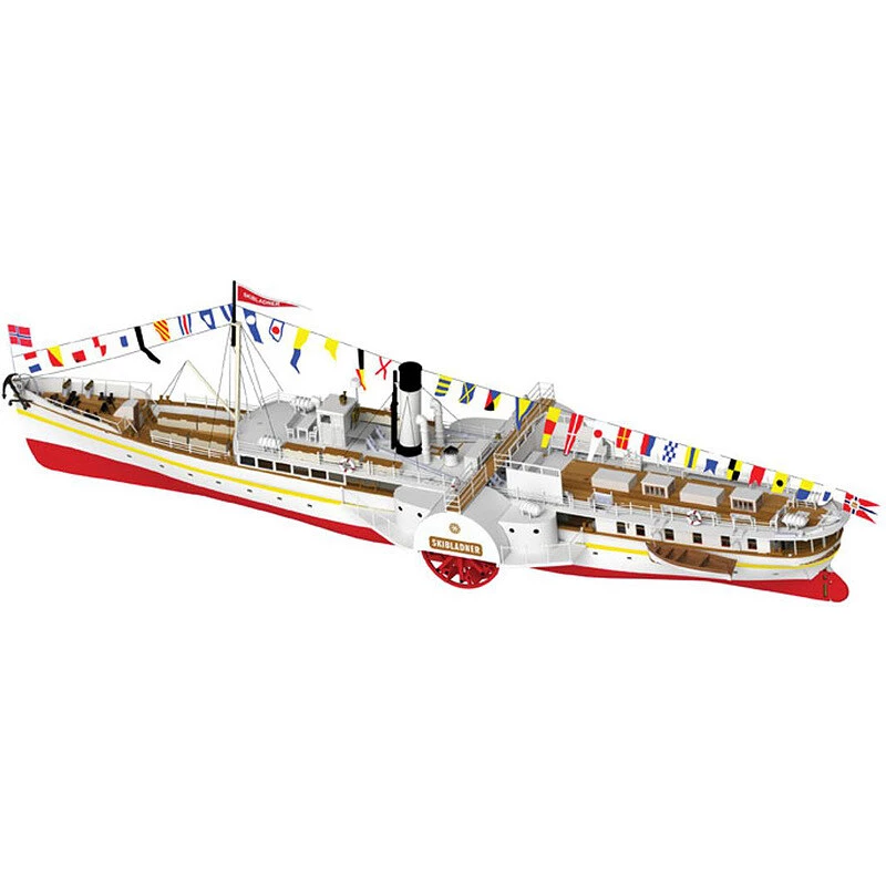 Stavebnica modelu Nórskeho kolesového parníka, Modell-Tec D/S Skibladner 1:60 kit, s množstvom detailov s dĺžkou 83 cm. Model je možné zostaviť ako neplávajúci alebo ho môžete vybaviť RC súpravou a elektro pohonom a prevádzkovať ako funkčná loď .